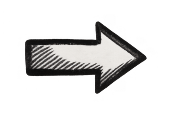 Hand drawn chalk arrow pointing right, depicting direction, progress, and growth on a transparent background