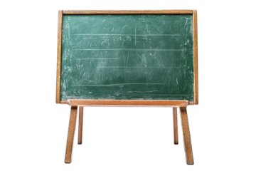 Empty green chalkboard with wooden frame isolated on transparent background. With copy space for text.