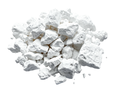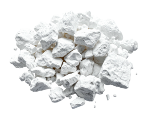 A pile of white, chalky powder with larger, crumbly chunks and rocks.