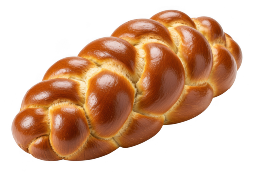 Freshly baked challah bread, a traditional jewish sweet bread, isolated on transparent background