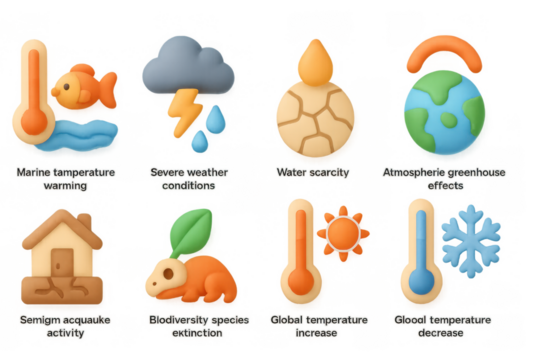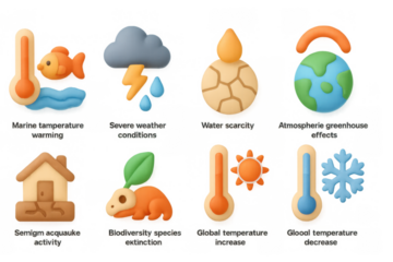 Climate change impact: symbols of global warming and environmental challenges