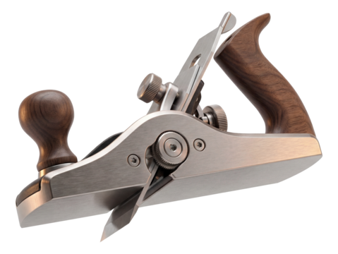 Edge plane with a dual iron setup for creating chamfers in furniture making.
