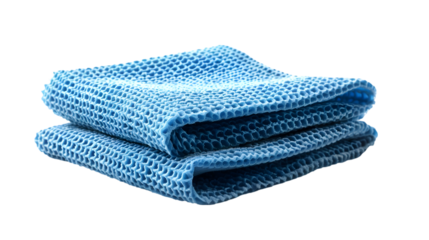 Blue new folded sponge cloth for cleaning isolated on a transparent background