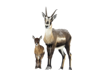 Two chamois standing together in a snowy landscape during winter, showcasing their natural habitat and family bond on transparent background