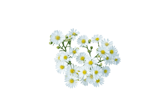 High-resolution feverfew flower cluster isolated PNG on transparent background for seamless botanical overlays, wedding invitations, scrapbooking, and modern graphic design cutout projects