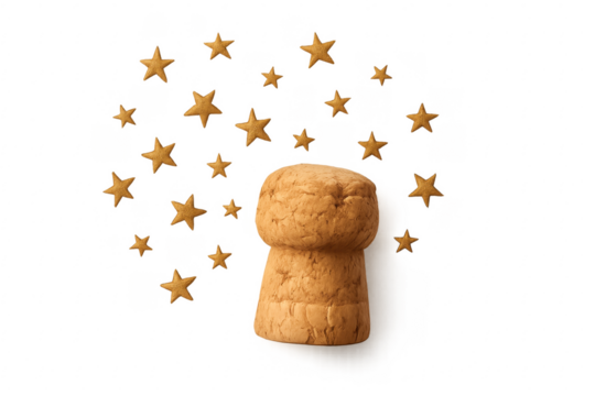 Champagne bottle popping with cork flying and liquid splashing, isolated on transparent background