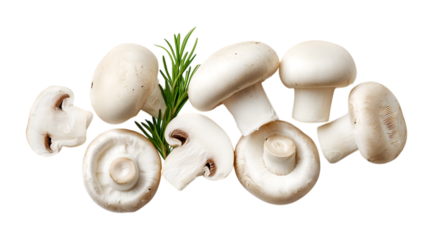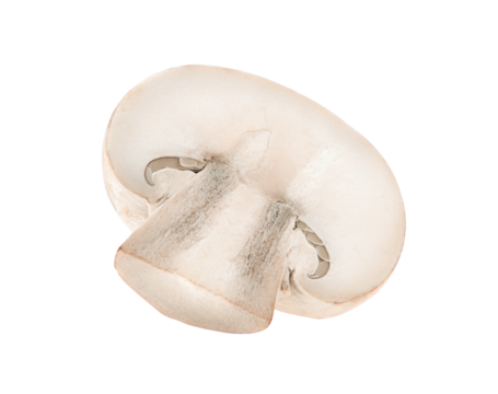 Fresh Agaricus bisporus mushroom cut out isolated transparent background