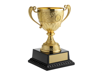 Winner golden trophy cup on transparent background. Triumph champions, celebration sports winner awards.