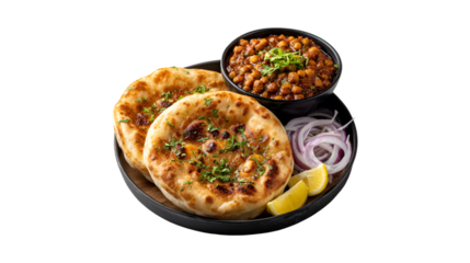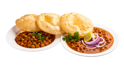 Pair of Traditional Chana Masala with Bhatura Dishes, Isolated on Transparent Background.