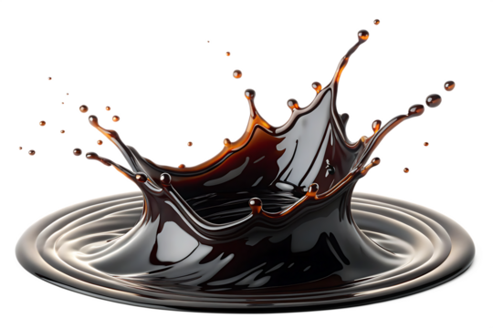 black soy sauce splash in glossy upward motion with high peak and realistic texture  on AI generated by PNG