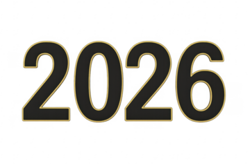 Shiny gold metallic numbers 2025 represent the upcoming new year, isolated on transparent background