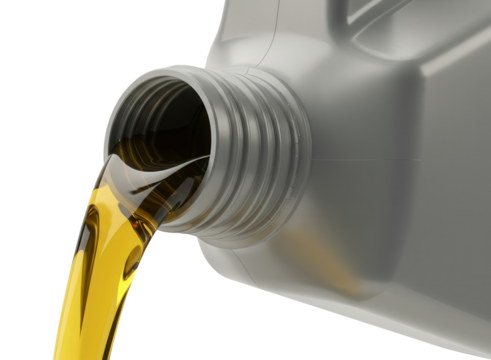 Motor oil container with an oil filter and funnel for convenience on a transparent background