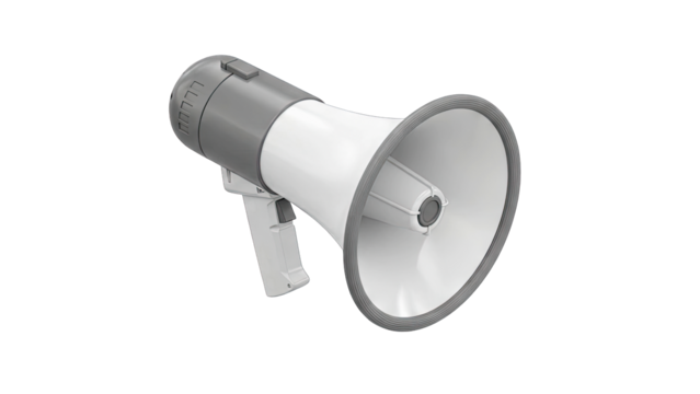 White and Gray Megaphone Isolated on Transparent Background for Announcements and Public Address
