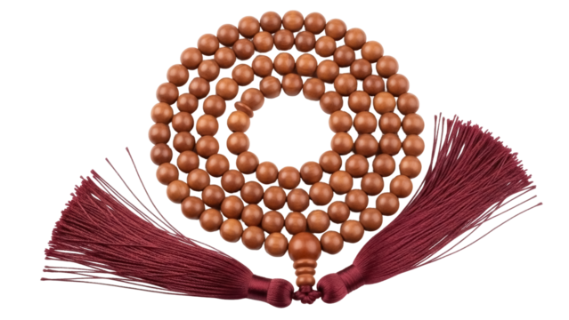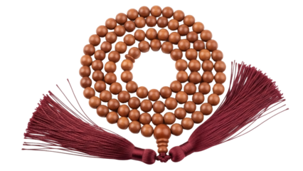 Brown wooden prayer beads with golden tassel isolated on white isolated on transparent background