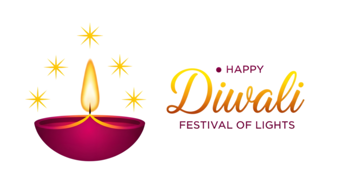 Happy diwali festival of lights diya and stars isolated on transparent background