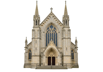 Isometric gothic cathedral church exterior detailed architectural illustration medieval stone building perspective view high detail isolated on white background