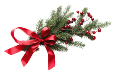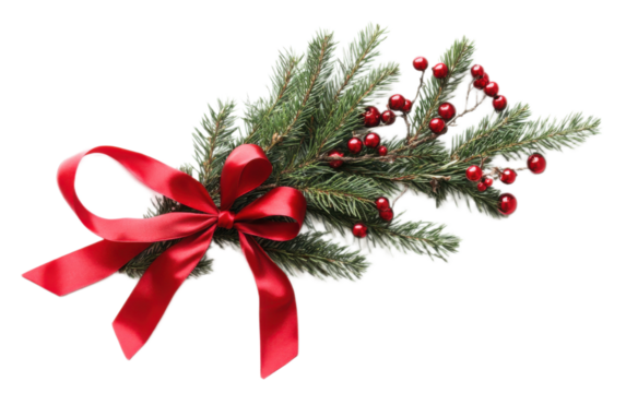 Christmas Wreath with Red Bows, isolated on  a transparent background, png