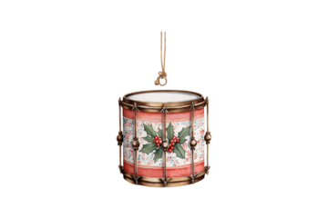 Watercolor Christmas Drum Ornament, Isolated on a Transparent Background