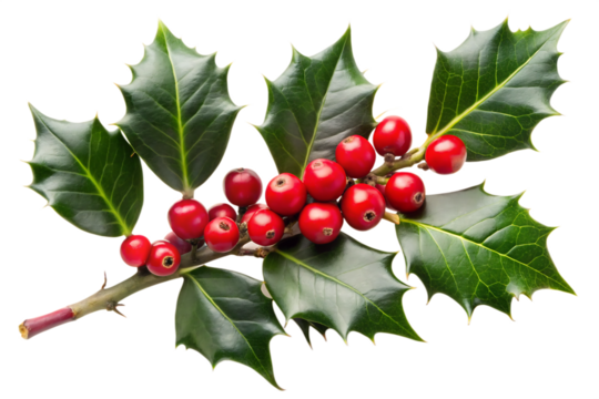 Holly and berries branch twig for cristmas , isolated on white background.png