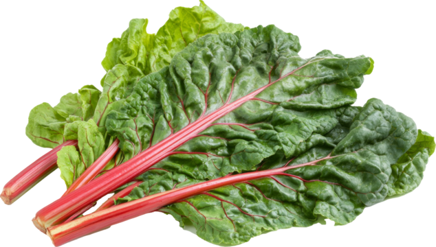 Fresh chard isolated on transparent background, a vibrant and nutritious leafy green, perfect for salads, stirfries, and healthy cooking, showcasing its natural beauty