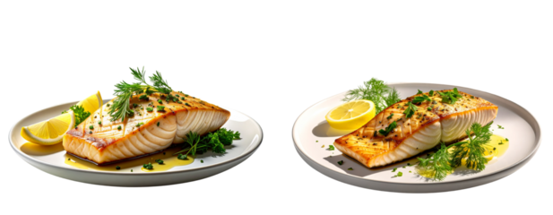 Sat of Luxury Seafood Experience – Elegant Restaurant Plate of Grilled Fillet and Chardonnay Pairing PNG