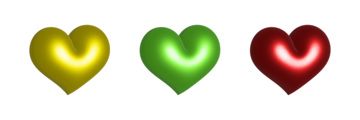 Assorted Metallic Hearts on Transparent Backdrop Gold Green Red Shiny Love Icons Affection Symbols Graphic Design Elements Care Kindness Passionate Romance Charity Support