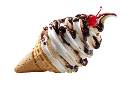 Decadent Crazy Charlie Sundae Swirl ice cream dessert with rich creamy layers, colorful swirled toppings, and glossy melting details isolated on transparent PNG background for premium cutout design