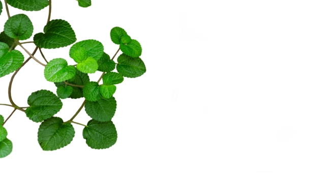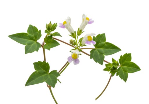 Close-up of a Creeping Charlie Plant with Small Flowers and Green Leaves on White Background isolated on transparent background