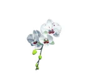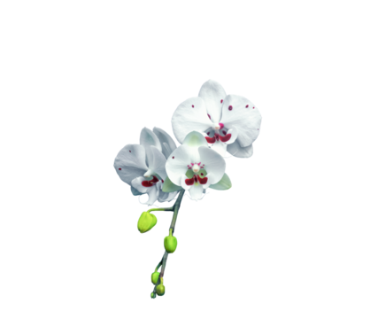 White orchids Phalaenopsis Allura in red stains, green buds isolated on transparent background