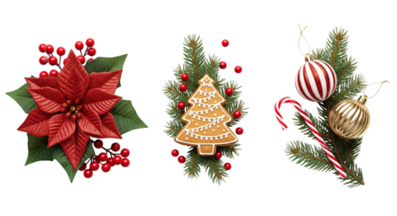 Exquisite Festive Christmas Wreath with Berries and Pinecones  Isolated on transparent background, cutout