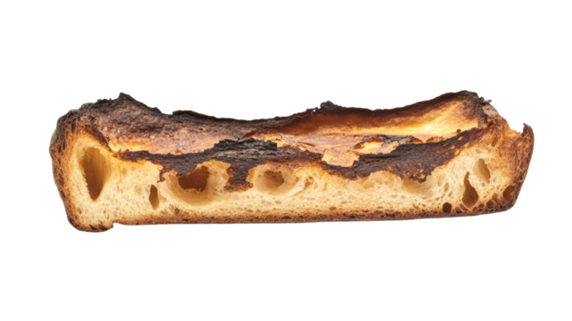 A piece of aged, burnt paper with charred edges and a curled corner, evoking a sense of history, mystery, and the passage of time, isolated on transparent background