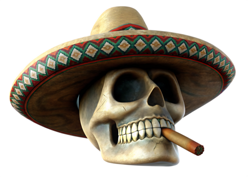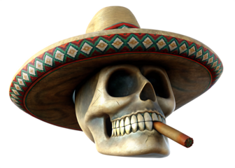 Skull charro hat smoking cigar isolated on a transparent background.PNG
