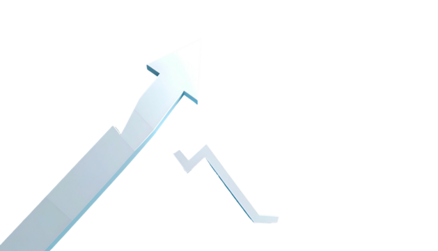 A 3D rendered white graphic of a declining and fluctuating line graph on a black background