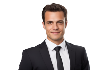 Smiling white businessmen in suit on transparent background. Men in work clothes. Rich men. Business boss. Boss of a start-up. European men. French men. American men. Isolated image. Png cut out