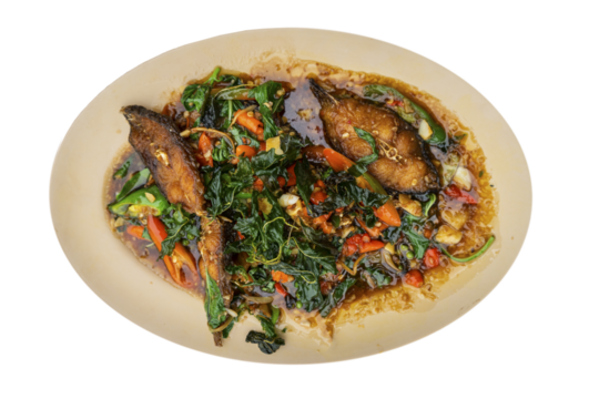 Stir fried Spicy Catfish (Pad Cha).