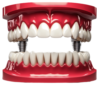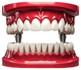 Tooth funny toy denture red color jaw and eye on transparent background.