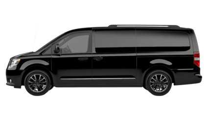 A sleek black passenger van, ready for any adventure. The polished exterior and tinted windows hint at the comfort and style within, promising a smooth and enjoyable ride.