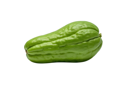 A fresh and vibrant chayote squash, isolated on transparent background, showcasing its unique pearlike shape and smooth, green skin, ideal for healthy eating