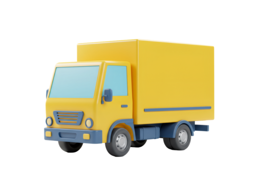 黄色のトラックの3Dイラスト 青い窓とドアを備えた輸送用トラックの孤立した画像
