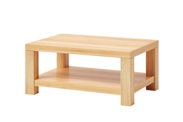Light-colored wooden coffee table, rectangular shape, simple design, with a single shelf below the tabletop