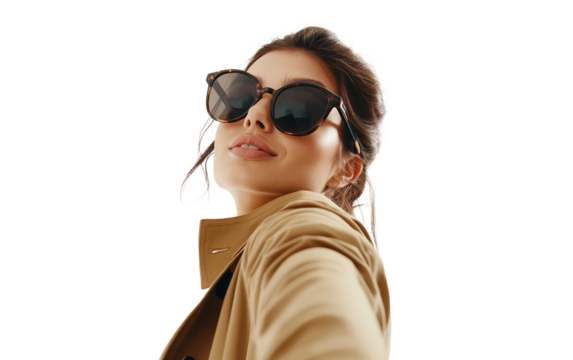Stylish blogger checking pose while taking selfie representing modern fashion lifestyle and urban aesthetics isolated on transparent background PNG
