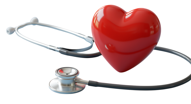 Stethoscope wrapping around a heart representing health and wellness checkup