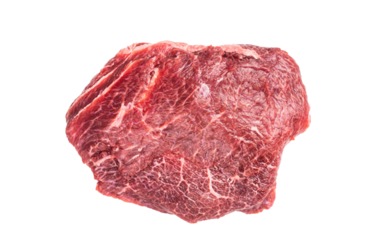 Raw Beef cheeks, fresh veal meat Isolated on white background. top view