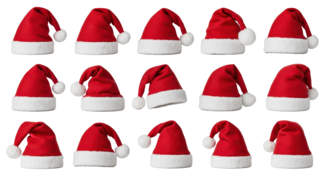 Set of classic red santa hats for holiday decor and festive winter celebrations