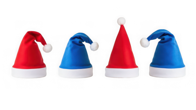 Festive array of Santa Claus hats isolated on transparent background, showcasing a variety of textures, colors, and styles, perfect for Christmas holiday season
