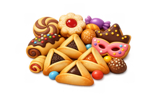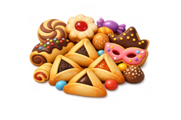 Purim celebration hamantaschen and candy illustration for festive card or poster design