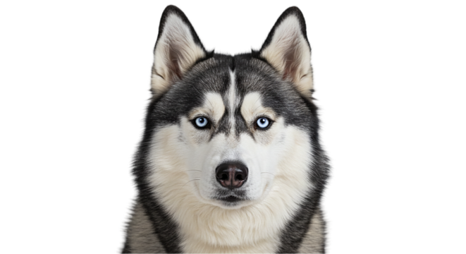 Isolated husky puppy looking forward with open mouth, blue eyes, standing upright, cute face