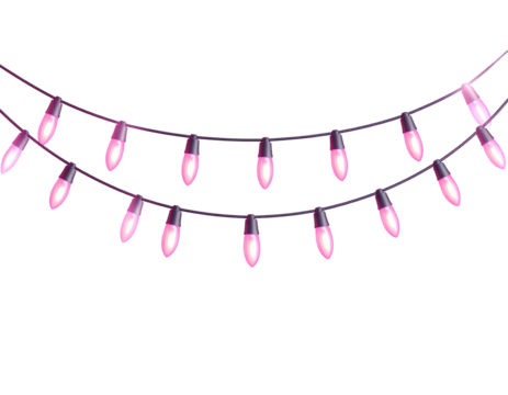 Festive string lights glow with a soft pink hue creating a warm and inviting atmosphere.