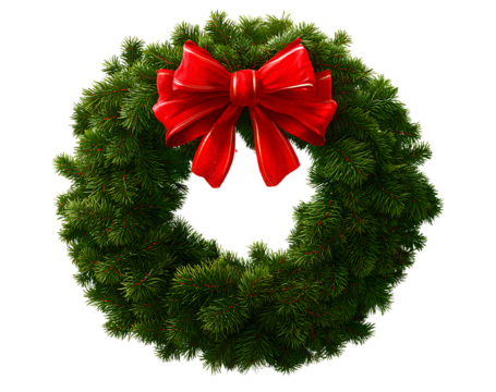 Festive fir wreath evergreen foliage bow adornment winter celebration decoration holiday invitation card december pine needle year gift