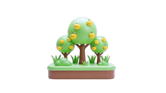 Cute kawaii fruits with smiling faces in 3d style for kids' designs